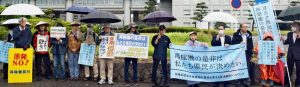 抗議宣伝で、「柏崎刈羽原発再稼働の是非を考える新潟県民ネットワーク」の大賀あや子世話人が、県民の熟議と意思を反映して「再稼働の是非は県民が決める」ことが県民の願いだと訴えました。
