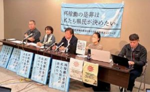 大賀氏は、県民投票条例案否決後も、新潟日報や県民ネット独自の県民調査で、「県民の信を問う」手法は、「県民投票」が約6割と、「県議会議決」の14%を大きく上回っていると述べ「県民一人ひとりが意思を表明する県民投票の実施こそ必要」と求めました。