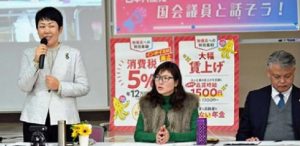 原発問題について岩渕氏は「全国で原発の再稼働がねらわれています。(静岡にある)浜岡原発もその一つです」と述べ、「東電福島原発事故から14年8カ月たちますが、今も数万人が避難生活を送っています」と報告。「政府の施策によって原発事故の被害者に分断と自己責任が押しつけられています」と告発し、柏崎刈羽原発の再稼働の動きを批判しました。