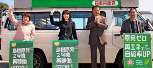 尾村県議は、高市政権が福島原発事故を「終わったこと」にするかのように、原発の再稼働、新増設に突き進んでいると批判しました。中国電力島根原発2号機(松江市)の再稼働・プルサーマル発電や同原発3号機の新規稼働も含まれているとして「福島原発事故の教訓は安全な原発などあり得ない」ということだと強調し、「島根原発直下には140キロもの活断層(宍道断層、鳥取沖断層)が走っており、いつ大地震が起きてもおかしくない」と訴え、「原発のない安全・安心の島根、松江をつくるため全力を尽くす」と表明しました。