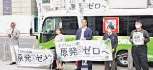 労働組合や医療・平和・農業・女性団体などで構成する原発をなくす全国連絡会は13日、東京・新宿駅前で、東京電力福島第1原発事故から15年がたった今こそ原発ゼロと、再生可能エネルギーへ転換をさせようと宣伝しました。参加者は原発ゼロ署名と、放射能で汚染された福島県浪江町の「ふるさとを返せ津島原発訴訟」の公正な判決を求める署名に取り組みました。