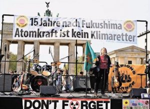 【ブリュッセル=吉本博美】福島第1原発事故から15年、チョルノービリ原発事故から40年の節目に合わせ、ベルリン中心部のブランデンブルク門前で18日、市民団体による反核デモが行われました。「原子力も核兵器も認めない」と訴え、日本を含む各国政府に対し両事故から教訓を学ぶべきだと指摘しました。